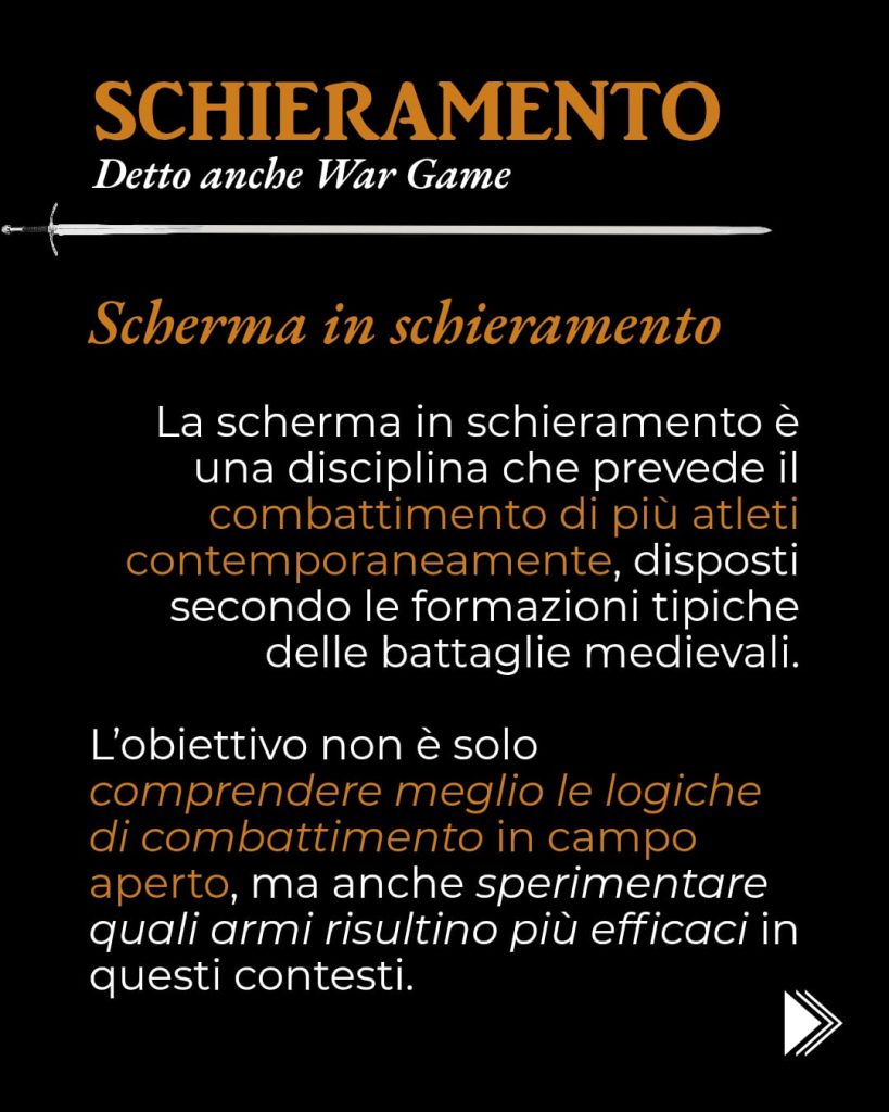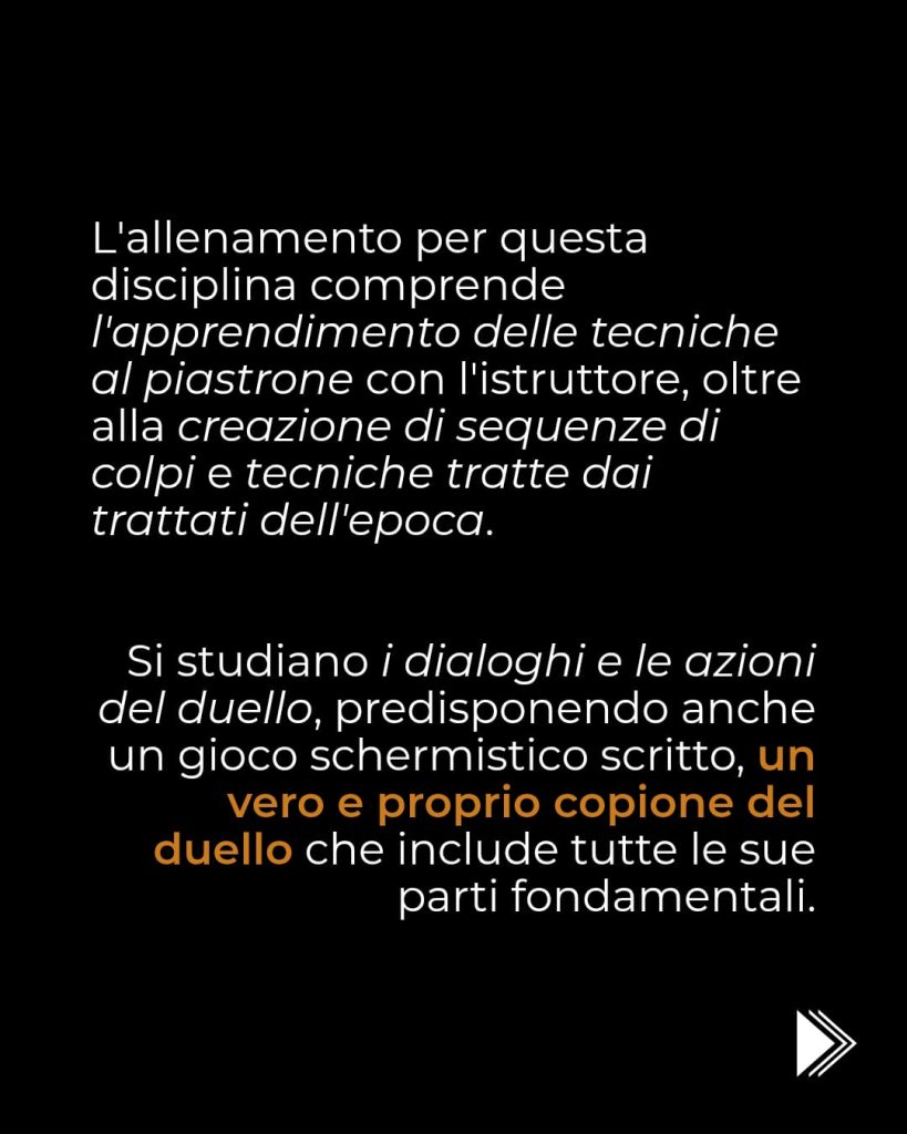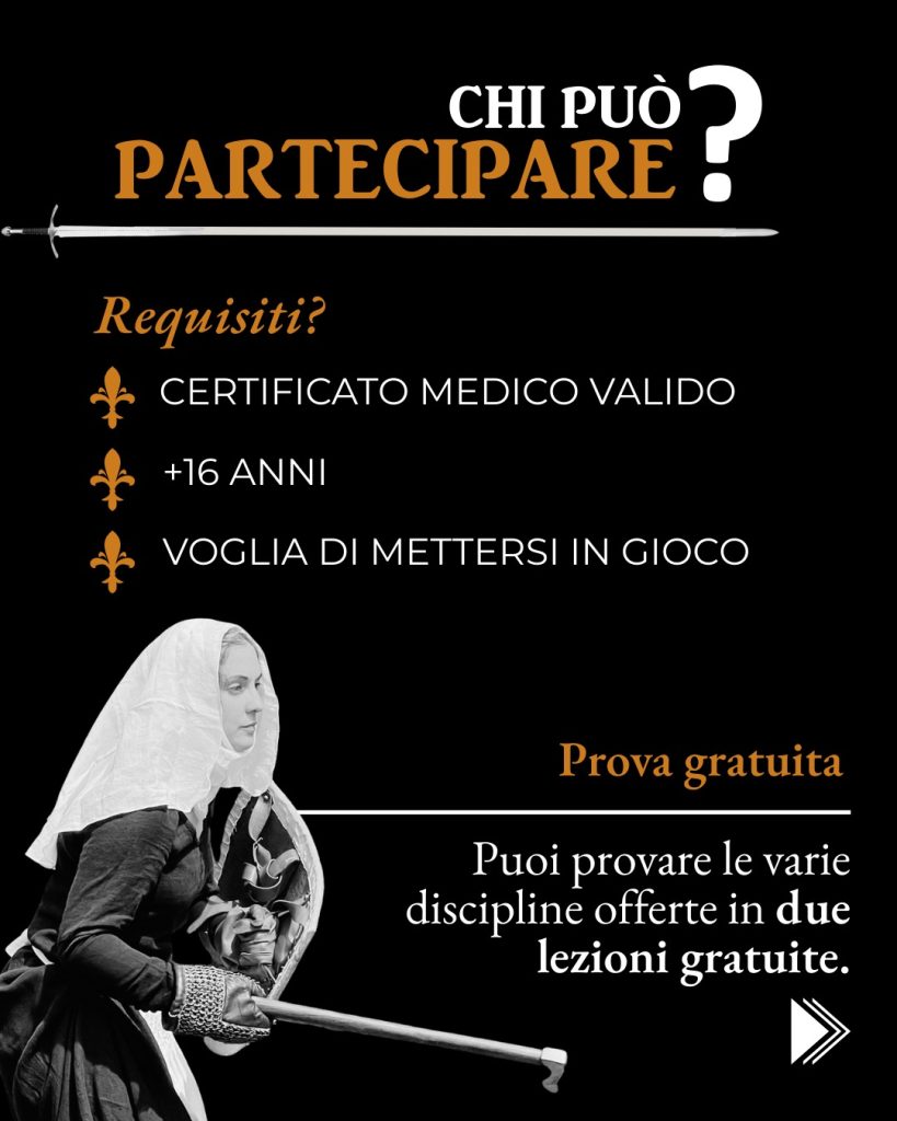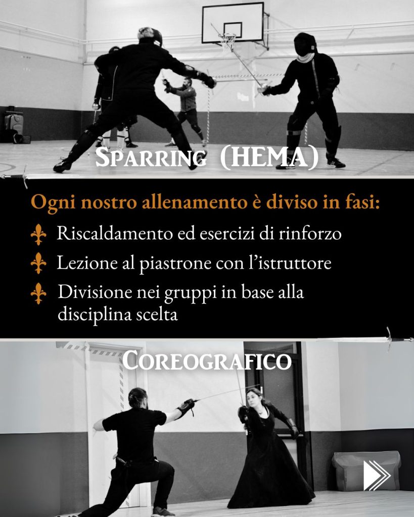 Gli atleti dell’associazione partecipano con successo a tornei di: spada a due mani (longsword), spada e brocchiero (sword & buckler), sciabola (sabre), striscia (rapier), striscia e pugnale (rapier & dagger), bastone (stick).